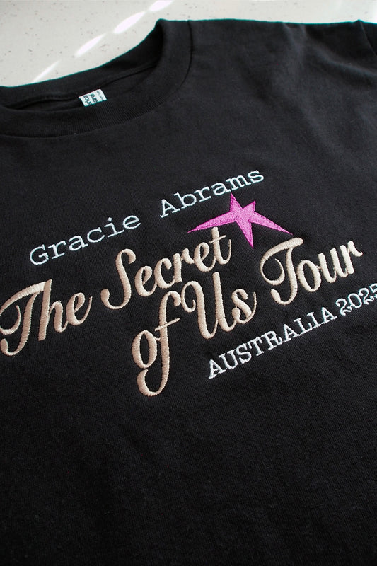 Gracie Abrams The Secret of Us Tour Embroidered Shirt | Black Tee