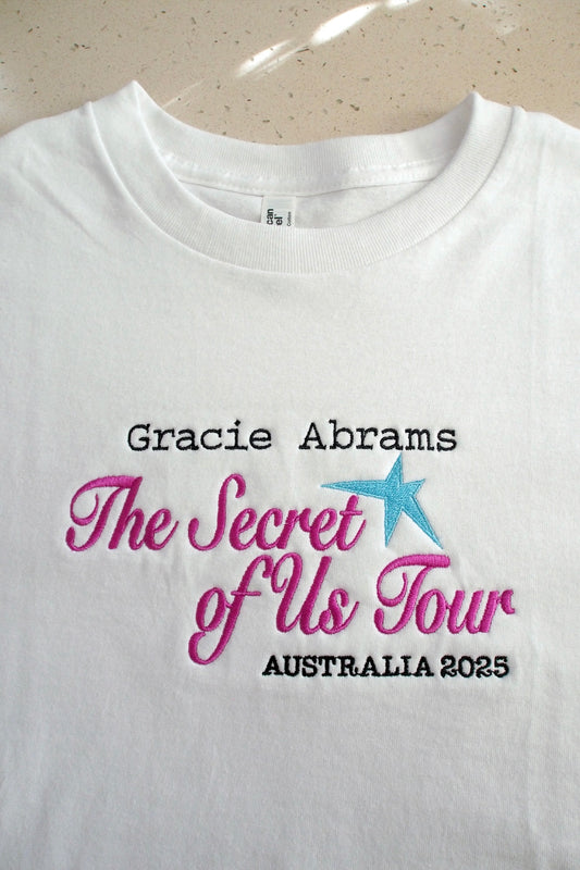 Gracie Abrams The Secret of Us Tour Embroidered Shirt | White Tee