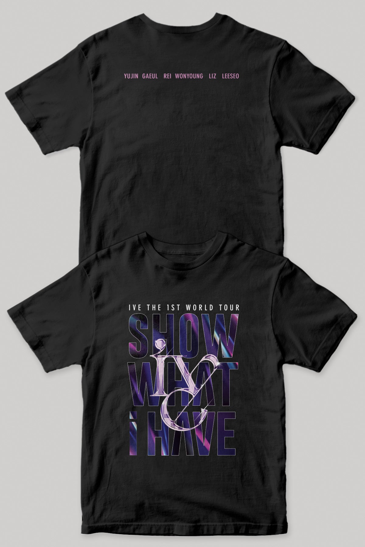 Celebrate IVE's electrifying 1st World Tour with our exclusive "Show What I Have" tribute tee. Featuring a bold full-front print of the tour name and IVE members' names on the back, this tee is a stylish homage to the group's journey and a heartfelt way to show your support.